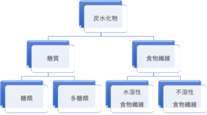 図の通り、「炭水化物」とは「糖質」と「食物繊維」の総称です。
